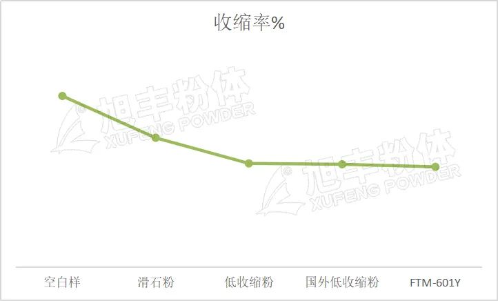 從上圖可以看出,FTM-601Y較添加滑石粉體系,具有較低的收縮率,同時相對純PP樹脂來說,收縮率也有大幅度的下降,這說明FTM-601Y在PP中具有良好的尺寸穩定性。