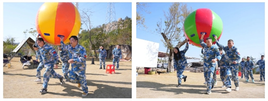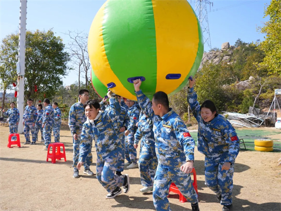 隨后的“運(yùn)轉(zhuǎn)乾坤”項(xiàng)目,巨大的充氣球需要團(tuán)隊(duì)成員共同發(fā)力,協(xié)調(diào)步伐才能快速前進(jìn)。