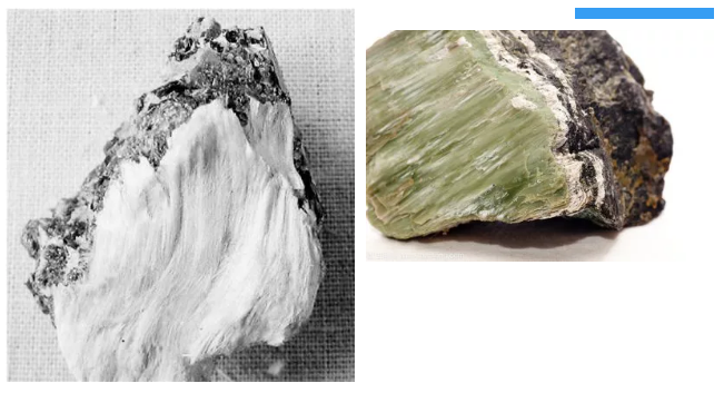 石棉屬于硅酸鹽類礦物,分子式Mg6(Si4O10)(OH)8,含有氧化鎂、鋁、鉀、鐵、硅等成分。石棉多數為白色,也有灰、棕、綠色;呈纖維狀集合體,具有絲絹光澤。石棉可以分為角閃石石棉和蛇蚊石石棉兩類,蛇紋石石棉又稱溫石棉,它是石棉中產量最多的一種,具有較好的可紡性。角閃石石棉又可分為藍石棉、透閃石石棉、陽起石石棉等,產量比蛇紋石石棉少。石棉在工業時代廣泛用于制造業,但由于其對人體的危害,逐漸被很多國家用替代品代替甚至禁用。